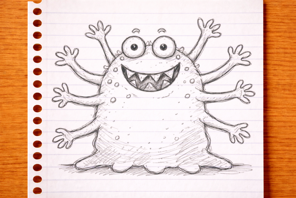 One portrait showed a green blob with six arms and sharp teeth. “Is this… me?” Mrs. Higgins asked cautiously. The student nodded enthusiastically. “Yes! You’re the homework monster! But a nice monster.” Another drew her as a robot with laser beam eyes. “Because you always see when we’re passing notes,” the student reasoned. Mrs. Higgins was learning that her students viewed her less as a human woman and more as an omnipotent, slightly terrifying entity that controlled their destiny.