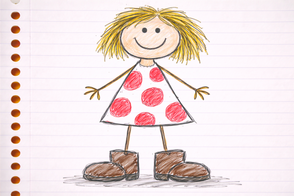 It wasn’t just her face that was under attack; her fashion choices were also being mercilessly critiqued by eight-year-olds. Several drawings focused entirely on her outfit.