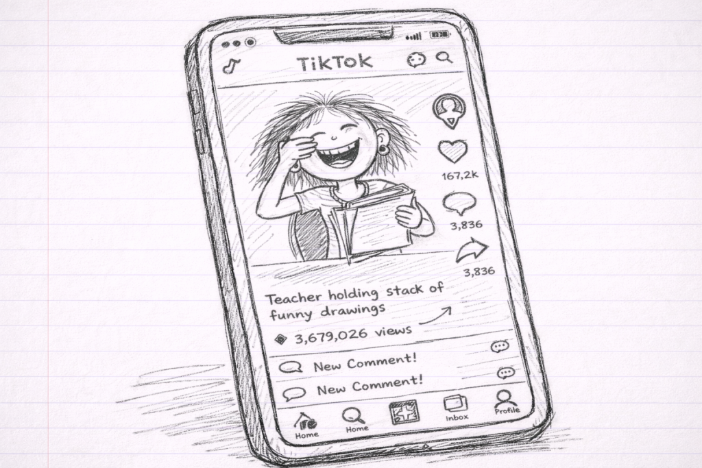 A compilation video of the drawings, set to jaunty music, was uploaded to TikTok by one of the moms. The caption read: “The teacher asked for portraits. The kids delivered savagery.” The algorithm grabbed hold of it. The views started climbing—10,000, then 50,000, then half a million overnight. The world was ready to see Mrs. Higgins through the eyes of her third graders.