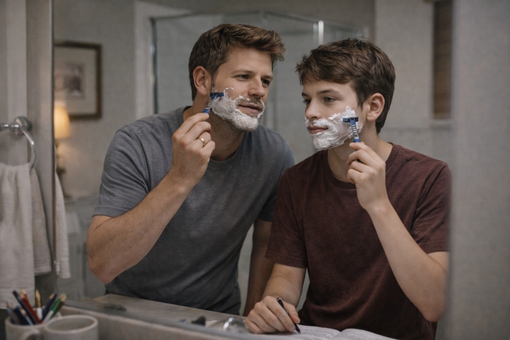 But we talked. I taught him to shave. I taught him to tie a tie.