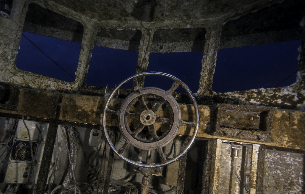 Just as Angela began to feel discouraged, she spotted a window high on the ship’s steering cabin. It had a long crack running through it, and the glass looked thinner than the rest of the structure. Angela waved Mark and Tomas over and pointed at the crack, signaling that this might be their way inside.