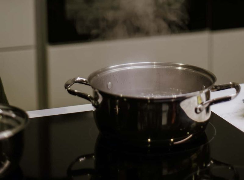 So one night I had enough. I put a stockpot on the stove to boil, then poured the boiling water into the sink with some dish soap.