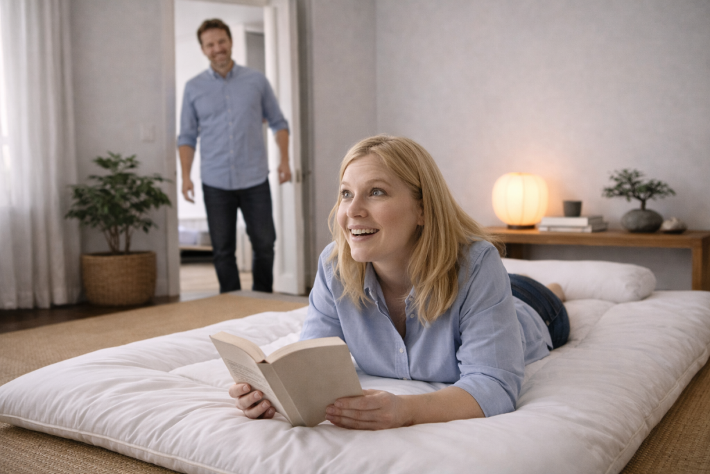 I didn’t say “I told you so.” I just smiled. “How is it?” I asked. She shifted her shoulders against the firm cotton. “It’s… different,” she admitted. “It feels like a massage. Like the floor is pushing the knots out.” That afternoon, she took a nap on the floor. When she woke up, she didn’t complain about her back. The fortress of the $3,000 mattress was beginning to crumble. I knew then that the experiment was over; this was just our life now.