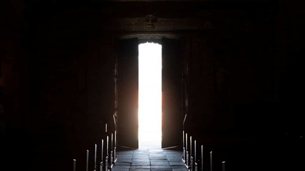 The chapel door opens
