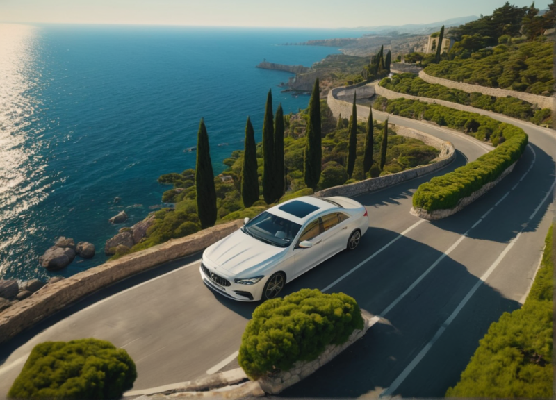 The driver handled the winding roads expertly, leaving the bustling city far behind us. Soon, the sparkling Mediterranean Sea appeared on the horizon, glistening under the bright sun.