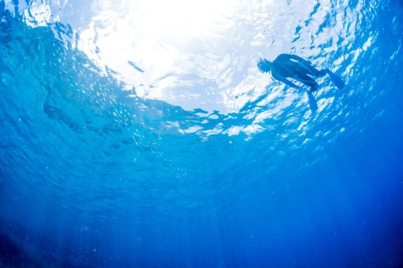 The waves bobbed around him, leaving him feeling small in the vast sea.