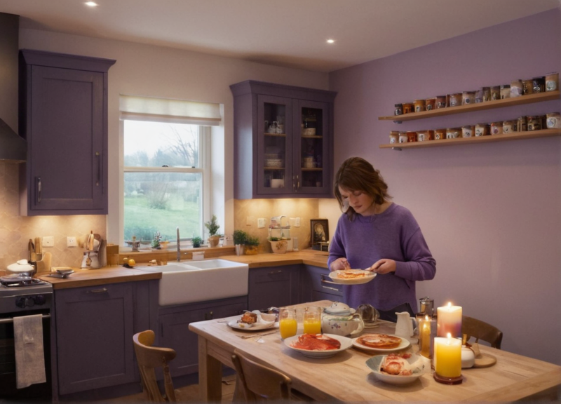 He moved around the kitchen quietly, cooking up pancakes, eggs, and bacon. The familiar sizzle and warmth of the kitchen filled him with a sense of purpose.