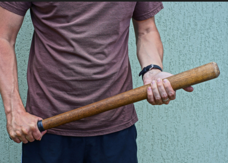 With the stick in his hand, he sneaked toward the front door. Luckily for him, the door was unlocked.
