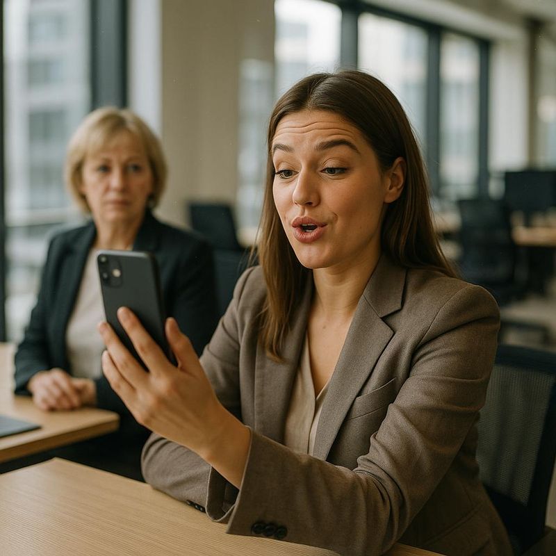 Instead, she was positioning her phone on her desk, adjusting the angle every few minutes. ‘Just documenting the corporate journey,’ she explained with a wink.